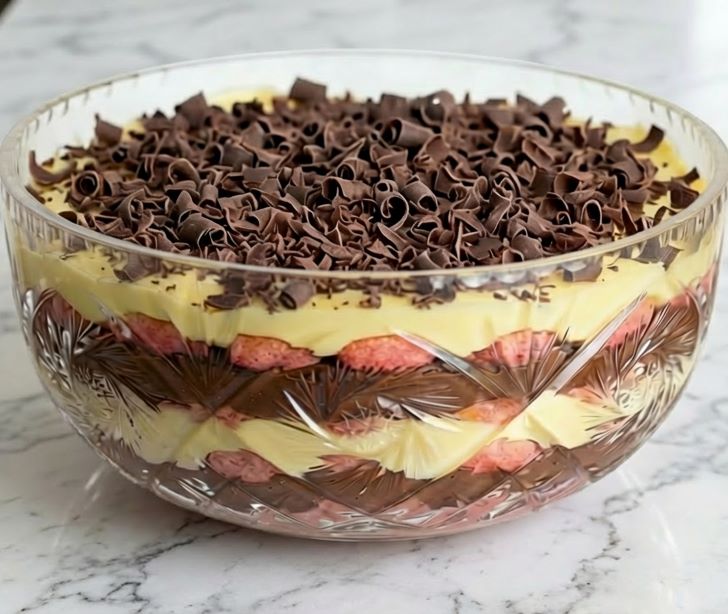 I usually chill it overnight so the flavors really come together, the Alchermes soaks into the sponge, the custard sets just right, and the whole thing becomes wonderfully rich and balanced. I like serving it in a big glass bowl so the colorful layers can shine. But when I want to make it feel a bit fancier, I’ll scoop it into individual dessert glasses and top each with a bit of whipped cream or a dusting of cocoa powder.